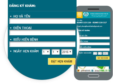 Hoặc kéo xuống phần cuối cùng của trang web, điền đầy đủ thông tin vào khung "ĐĂNG KÝ KHÁM". Chúng tôi sẽ tiếp nhận thông tin của bạn ngay sau đó