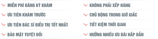 Bệnh nhân đăng ký khám trực tuyến sẽ được sắp xếp khám theo đúng lịch hẹn. Trường hợp bệnh nhân không đăng ký trước sẽ phải chờ đợi. Bạn cũng có thể thông báo thay đổi lịch theo hẹn nếu gặp tình huống đặc biệt.
